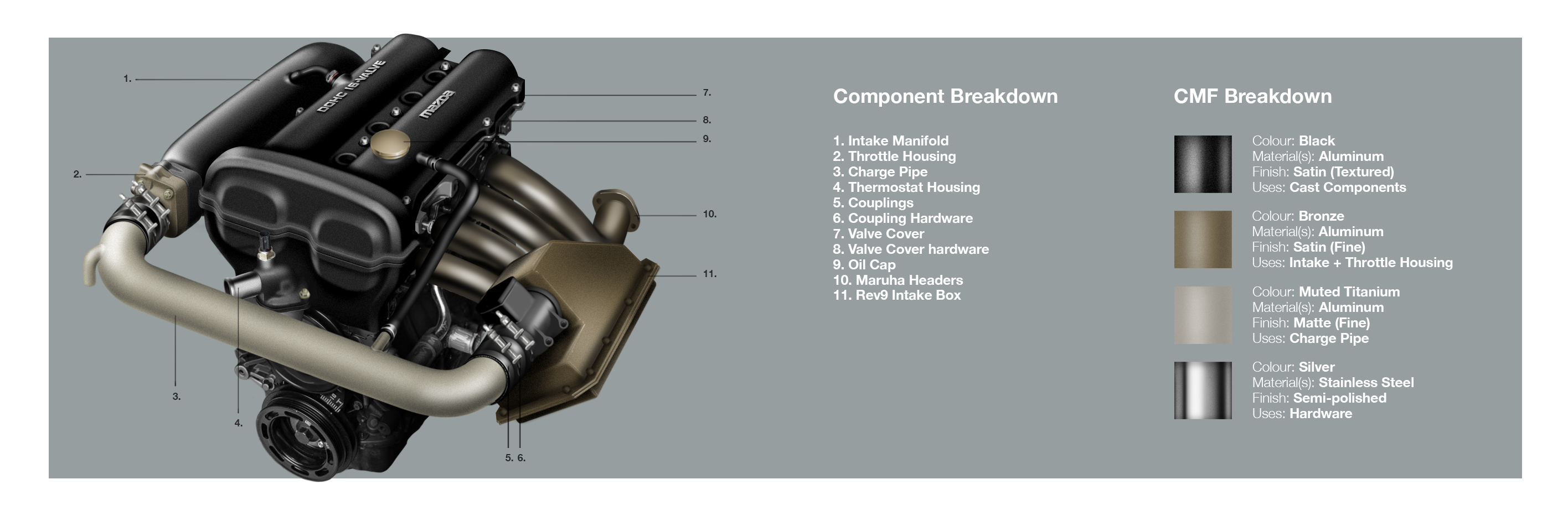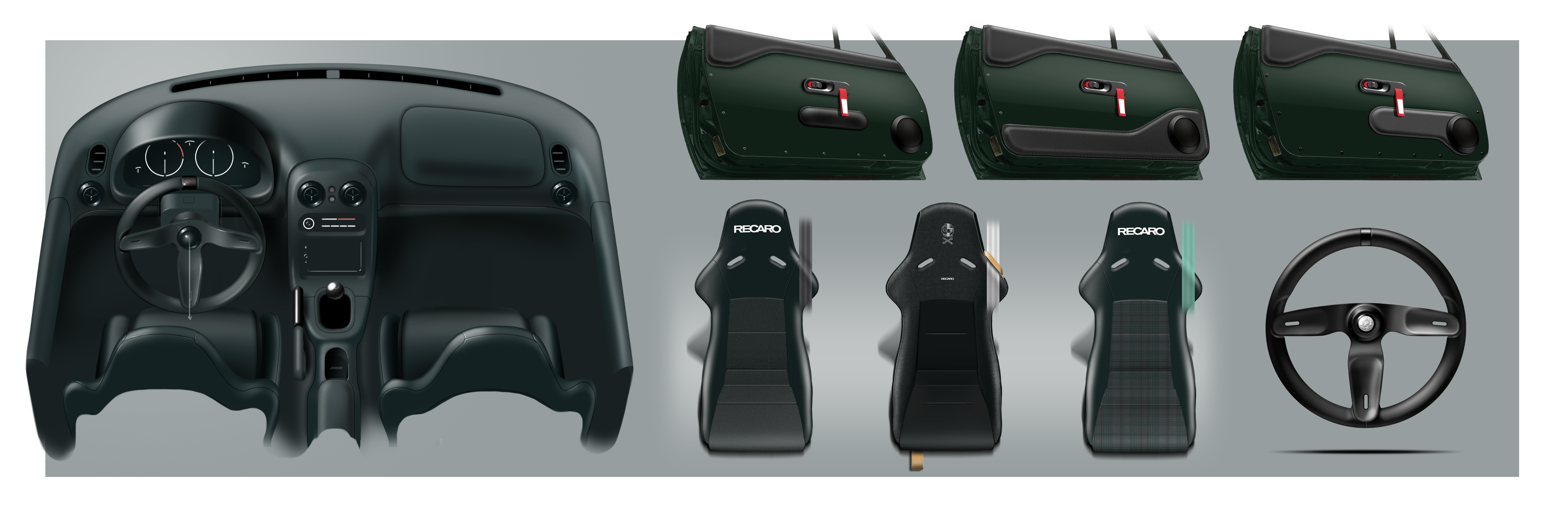 These iconic details from the motorcycle world helped inform many of the design decisions made in the build. Carefully crafted to elevate the physical and visual experience of the roadster. Reducing material differentiation to create a more cohesive colour and trim story.